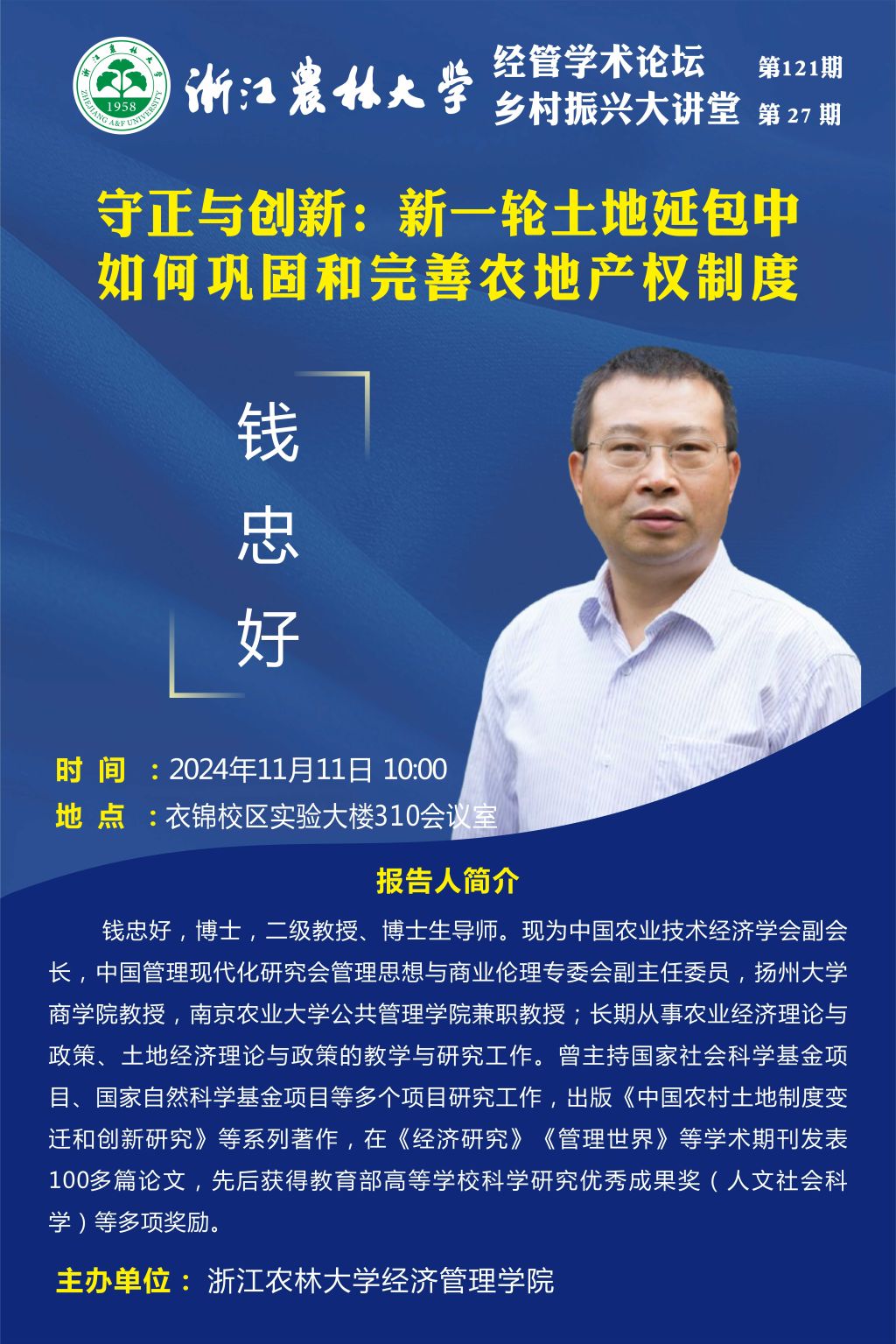 经管学术论坛第121期|守正与创新:新一轮土地延包中如何巩固和完善农地产权制度
