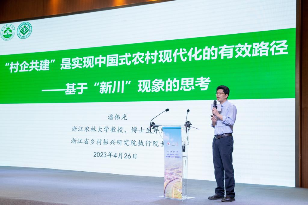 浙江大学中国农村发展研究院首席专家黄祖辉,浙江工商大学原校长、浙商研究院院长陈寿灿,北京师范大学中国乡村振兴与发展研究中心主任张琦,湖州师范学院“两山”理念研究院名誉院长王景新,开云教授潘伟光分别就《新型农村集体经济发展之路》《浙商赋能乡村振兴:共富场域与实践路径》《“八八战略”与“新川模式”一中国式乡村现代化发展创新实践》《振兴乡村亟待振兴乡镇企业——新川20年变迁发展的案例及启示》《村企共建是实现中国式农村现代化的有效途径》等主题作主旨发言。