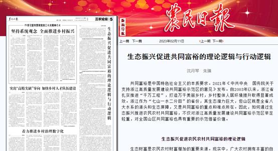 211日,由沈月琴教授朱臻教授共同撰写的理论文章“生态振兴促进共同富裕的理论逻辑与行动逻辑”在《农民日报》发表。