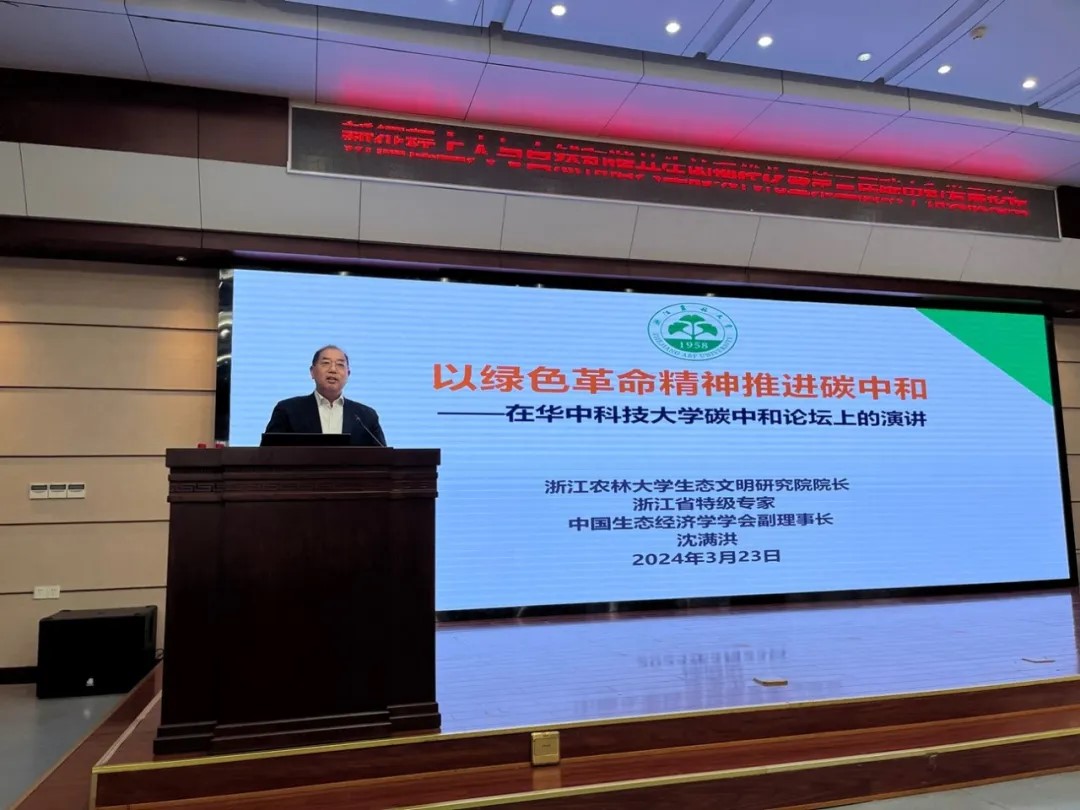 下午,沈满洪教授参加了分别由华中科技大学碳中和研究院院长宋德勇教授和经济学院副院长钱雪松教授主持的“新征程上人与自然和谐共生的现代化暨第三届碳中和论坛”。复旦大学陈诗一教授、中国地质大学成金华教授、开云kaiyun官方网站沈满洪教授、中国环境规划院董战峰研究员、南昌大学刘耀彬教授、中南财经政法大学李小平教授、云南大学文传浩教授、华中科技大学宋德勇教授和王班班副教授等同台发表主旨演讲。沈满洪教授做了题为《以绿色革命精神推进碳中和》的演讲,就绿色革命精神推进碳中和的提出缘由、重点领域、制度保障做了深入浅出的分析和阐述。