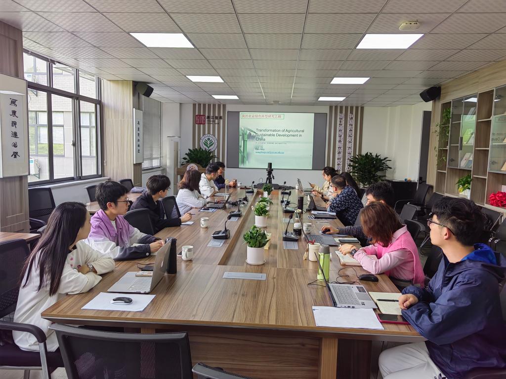 王芳教授从介绍世界人口增长和粮食安全问题的现实背景出发,结合所从事的欧盟可持续发展项目研究成果,分析了农业循环经济的理论内涵,运用能量流的投入产出模型来测算了循环农业的效益;并结合四川省农业废弃物处理相关的合作社调研案例,介绍了循环农业运营管理的实践案例与经验。随后王芳教授与参会师生围绕相关研究领域进行了讨论交流。