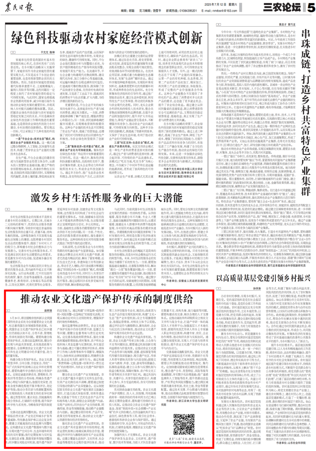 2025年7月12日,赵积强老师撰写的理论文章《推动农业文化遗产保护传承的制度供给》发表在《农民日报》上。现将全文转载如下: