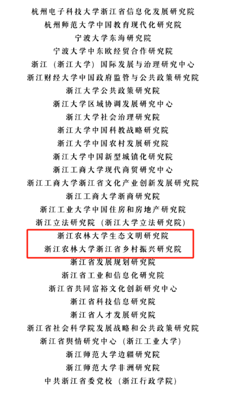近日,中国社会科学评价研究院“中国智库综合评价研究项目(2025)”公示了2025年AMI智库入库名单,全国有558家智库入库,其中浙江省新型专业智库有29家入选,学院重点支撑的2家省级重点新型智库“开云kaiyun官方网站浙江省乡村振兴研究院”“开云kaiyun官方网站生态文明研究院”双双入选。