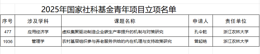 近日,国家自然科学基金委和全国哲学社会科学工作办公室分别公布了2025年项目评审结果,开云分别有5项国家自科基金项目和2项国家社科基金项目拟立项。其中国家自然科学基金拟立项数实现了学院历史突破。