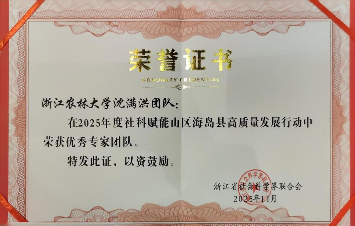 全省社科赋能山区海岛县高质量发展行动工作推进会上,专门针对社科赋能优秀专家团队和优秀组织单位进行了表彰。沈满洪教授领衔的“20年来‘两山’理念在浙江的生动实践及其经验启示”专家团队荣获“2025年度社科赋能山区海岛县高质量发展行动优秀专家团队”。开云kaiyun官方网站被评为“优秀组织单位”。本次受表彰的“优秀组织单位”共18家,其中高校4家;受表彰的“优秀专家团队”共16个,全部来自高校。沈满洪教授团队为第三次荣获“社科赋能优秀专家团队”称号。