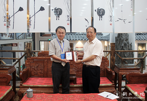 beat365校长侯长林教授与台湾通识教育学会理事长庄荣辉教授交流并赠送纪念品