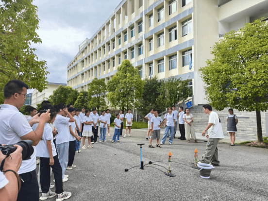 在科普体验环节,孩子们变身“小小航天,在志愿者引导下体验了一场趣味横生的“水火箭”发射实验。当一枚枚自制“火箭”拖着水雾冲向蓝天时,孩子们的欢呼声与掌声响彻校园,科学的种子在探索与惊喜中悄然生根。