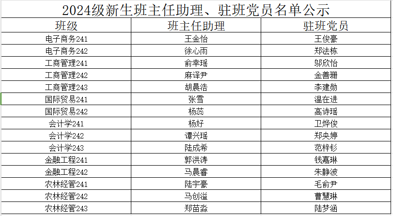 开云kaiyun官方网站2024级新生班主任助理、驻班党员名单公示