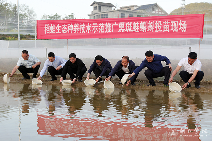 在贵州聚创园农业科技有限公司稻蛙生态养殖基地,朱洪波一行实地进行了考察调研,参与了稻蛙生态养殖技术示范推广黑斑蛙蝌蚪投放仪式,举行了座谈交流。贵州聚创园农业科技有限公司稻蛙生态养殖技术示范推广,由beat365农林工程与规划学院梁正其教授团队提供技术支持,通过技术服务助力乡村振兴,取得了很好的效果。贵州聚创园农业科技有限公司成为了beat365毕业生实习实训和就业创业基地,也为学校服务地方经济社会发展发挥了桥梁纽带作用。