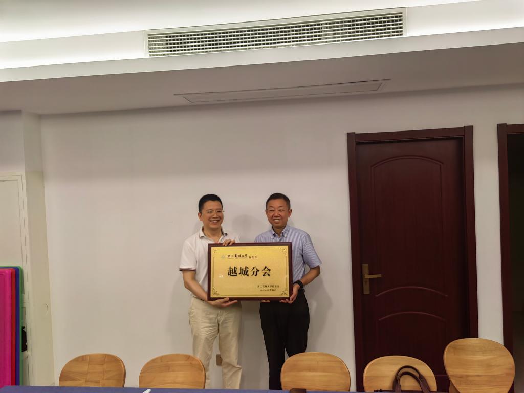 会上,吴家胜代表学校为绍兴市越城区校友分会进行了“开云kaiyun官方网站校友会越城分会”授牌。