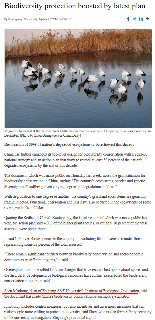 沈满洪教授就《中国生物多样性保护战略与行动计划》接受中国日报采访