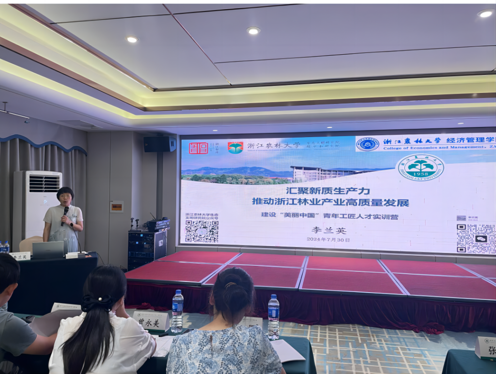 7月30日下午,李兰英教授为培训班88名青年工匠人才作“汇聚新质生产力推动浙江林业产业高质量发展”专题讲座。