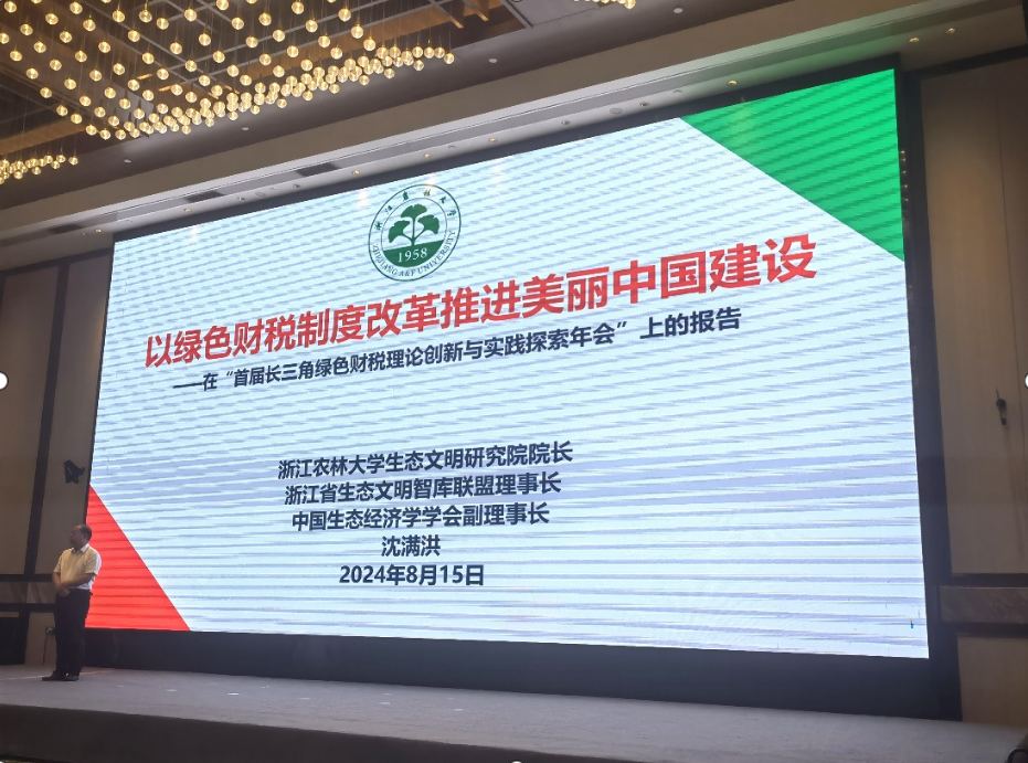 8月15日,首届长三角绿色财政理论创新与实践探索座谈会在绿水青山就是金山银山理念的诞生地湖州市举行。座谈会由北京国家会计学院、浙江省新征程财税研究院、浙江大学共享与发展研究院、浙江财经大学中国政府管制与公共政策研究院、开云kaiyun官方网站生态文明研究院、嘉兴大学中国共同富裕研究院共同发起,由浙江省新征程财税研究院主办。浙江省财政厅副厅长王广兵、浙江省社科联副主席范钧、湖州市常务副市长王宗明、中国财政科学研究院副院长邢丽、北京国家会计学院副院长李旭红及长三角地区三省一市财政系统的理论和事务工作者参加座谈会。沈满洪教授参加座谈会。