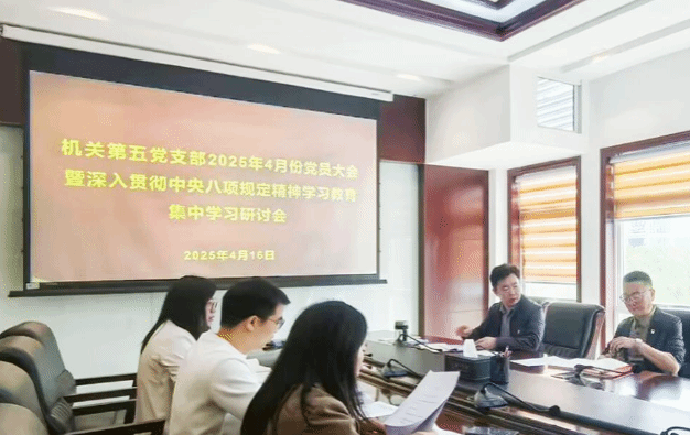 4月16日上午,机关第五党支部在行政楼8326会议室召开党员大会暨深入贯彻中央八项规定精神学习教育第一次集中学习研讨会。校党委委员、宣传部部长叶丹以普通党员身份参加会议,党支部书记梁光华会议主持,党支部全体党员参加会议。