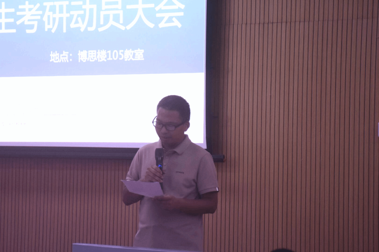 本次大会共有两个会场。院党委书记徐仕强和副院长(主持工作)田文勇分别于博思楼101和105教室致辞。他们肯定了2025届考研学子在考研工作中取得的成绩,并鼓励同学们以优秀学长学姐为榜样,勇敢追逐自己的学术梦想。