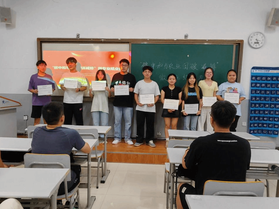 10月13日下午,经济管理学院2024-2025学年“碳中和与农林固碳减排”微专业结业典礼在明理楼B111举行。微专业负责人杨一凡老师、授课教师、班级导师和25届全体微专业同学参加了此次活动。