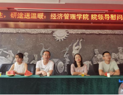 为进一步了解暑期留校考研学生备战状况与生活情况,激励同学们保持积极乐观心态,8月4日上午,我院副院长徐仕强和张云、彭虹、白彬三位老师一同在明理B202民族文化报告厅看望、慰问暑期复习备考的2018级考研学子,并为他们送来了贴心的果茶、西瓜等防暑清凉慰问品。