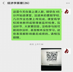 学生学习过程是人格养成过程,也是习惯纠偏过程。对于留学生教学,还有文化交流过程。教学初始,通过微信的信息交流,拉引与学生的情感距离,既有及时鼓励,又要强化纪律约束。
