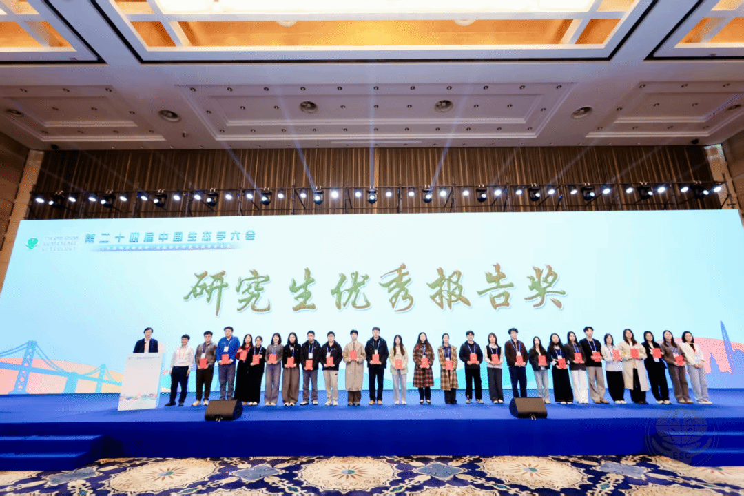 大会设立了全国生态学研究生论坛,来自清华大学、北京大学、复旦大学、中国科学院大学等高校与科研机构的490余位研究生在15个分会场做口头报告。魏珩在分会场4:草地与荒漠生态系统对环境变化的响应,以《全球气候变化及其对喀斯特植被碳汇过程的影响》为题做口头报告。其汇报内容理论创新性强、数据分析严谨,深入揭示了气候变化背景下喀斯特生态系统碳汇格局演变特征与气候驱动机制,并提出了基于土壤保持率的喀斯特区水土保持成效新评价体系。报告获得现场专家一致肯定,获得优秀研究生报告奖。