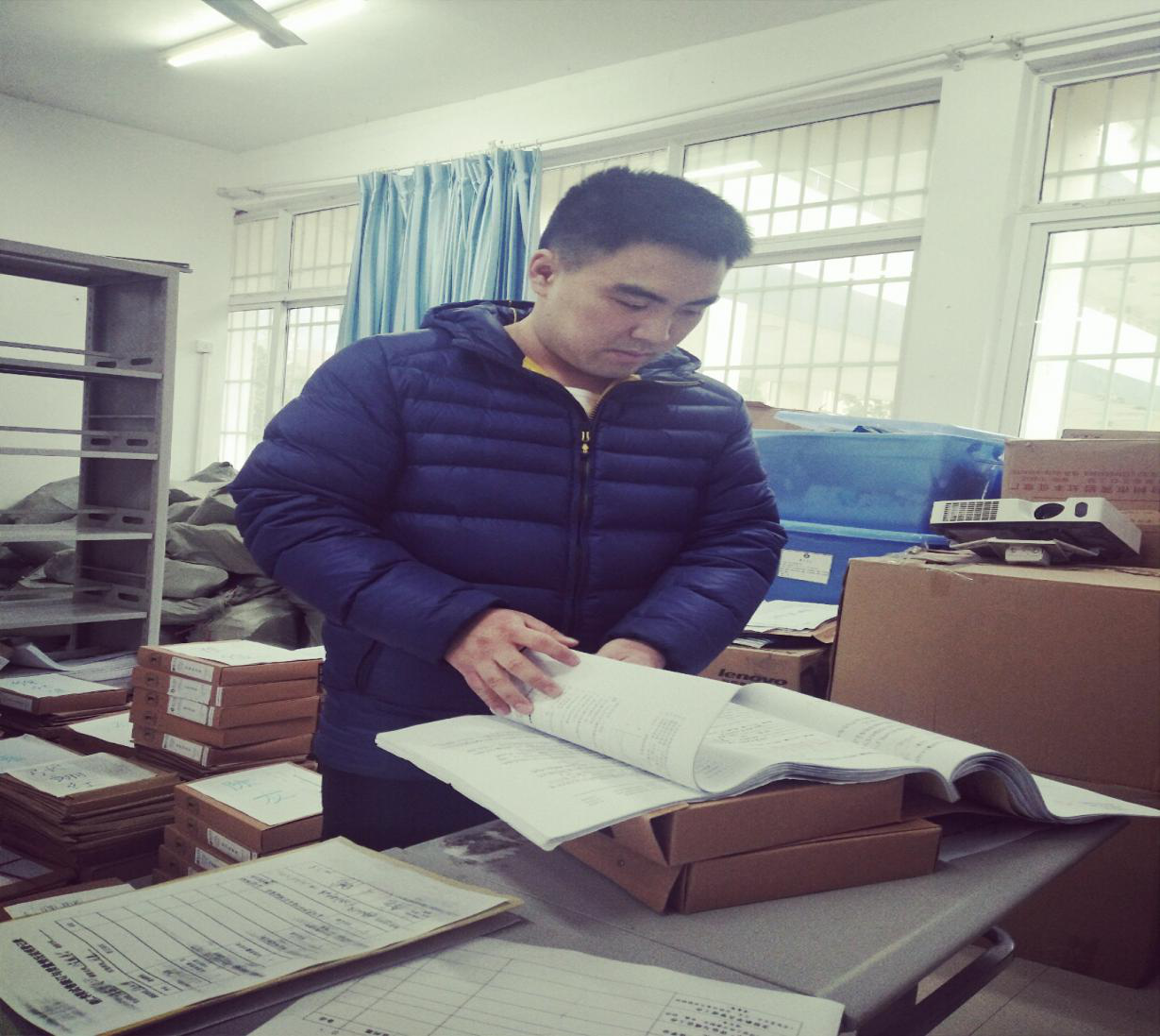 图四:校教学检查组李书锟老师对我院论文试卷整改进行检查