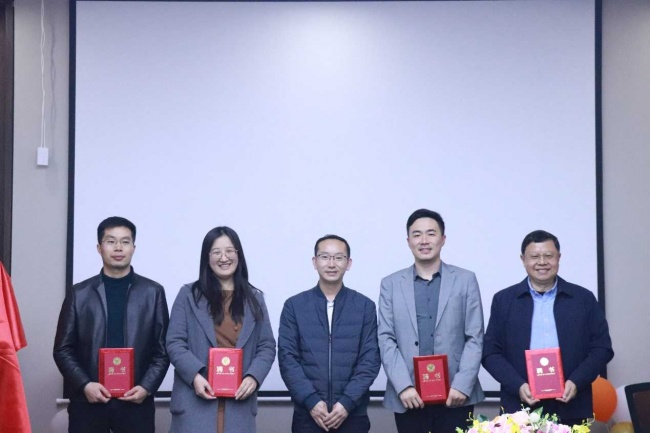 徐书记对本次要聘请的四名专家表达了期盼和谢意,并逐一为涂宇鑫执行董事、李峰副总经理颁发了金融工程专业校外导师聘书,为周德群主任委员、吴迪副主任颁发了旅游管理专业校外导师聘,并与导师们进行合影。