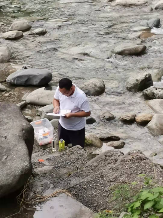 2021年9月19日,我院杨周博士、赵海博士赴梵净山开展黑湾河、太平河、闵孝河等8条环梵河流水环境调查研究,主要就河流水体的浊度、DO、pH等指标开展现场测试分析,返回实验室后测其BOD5、总磷、总氮、重金属及主要阴阳离子浓度,最终评价环梵净山水质情况及对重金属进行健康风险评价。