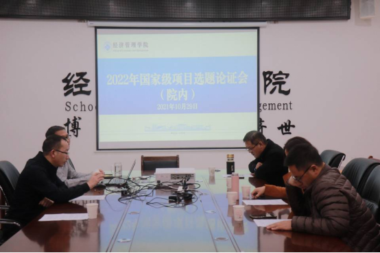 徐仕强副院长首先介绍了经济管理学院2022年国家级项目选题论证会的要求与目的,田文勇教授汇报了经济管理学院2022年国家级项目选题申报总体情况及五位校级评审专家的论证意见,与会四位院内评审专家现场针对经济管理学院30位副高以上职称教师的选题依次提出综合修改建议,会后科研科汇总修改建议后下发给每位申报教师,经教师本人修改凝练后汇总上交校科研处项目科。此次会议的召开标志着经济管理学院2022年国家级项目申报工作向前迈出了坚实一步。