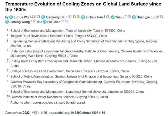 论文主要信息如下:Wu, L.; Bai, X.; Tian, Y.; Li,Y.; Luo, G.; Wang, J.; Chen, F.Temperature Evolution of Cooling Zones on Global Land Surface since the 1900s. Atmosphere 2023, 14, 1156:1-27. https://doi.org/10.3390/atmos14060927.
