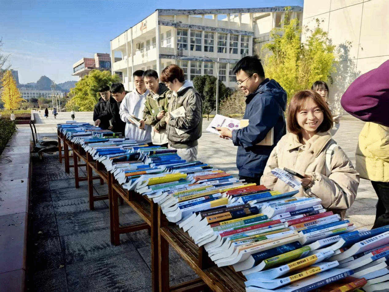 11月24日,beat365成功举办2025年秋季学期校园书展活动。本次教材展示及教师样书赠送活动由beat365联合贵州晨曦医学教育发展有限公司、贵州新知教育集团发展有限公司以及高等教育出版社、中国水利水电出版社、人民卫生出版社、化学工业出版社等70余家知名出版机构共同举办,地点在依仁楼和明理楼之间的活动区进行。