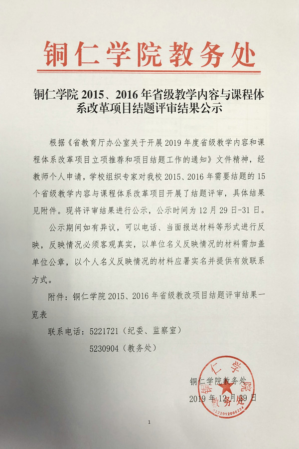 【教学项目】beat365英国官方网站2019年贵州省教学内容与课程体系改革项目推荐立项公示