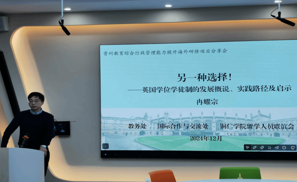 会上,从英国牛津大学访学归来的冉耀宗、赖全、陈洁三位老师,先后作了题为“英国学位学徒制的发展概说实践路径及启示”“ 穿越牛津古城的历史找到大学”和“ 牛津城与牛津大学——世界级学术和文化中心”的学习分享。