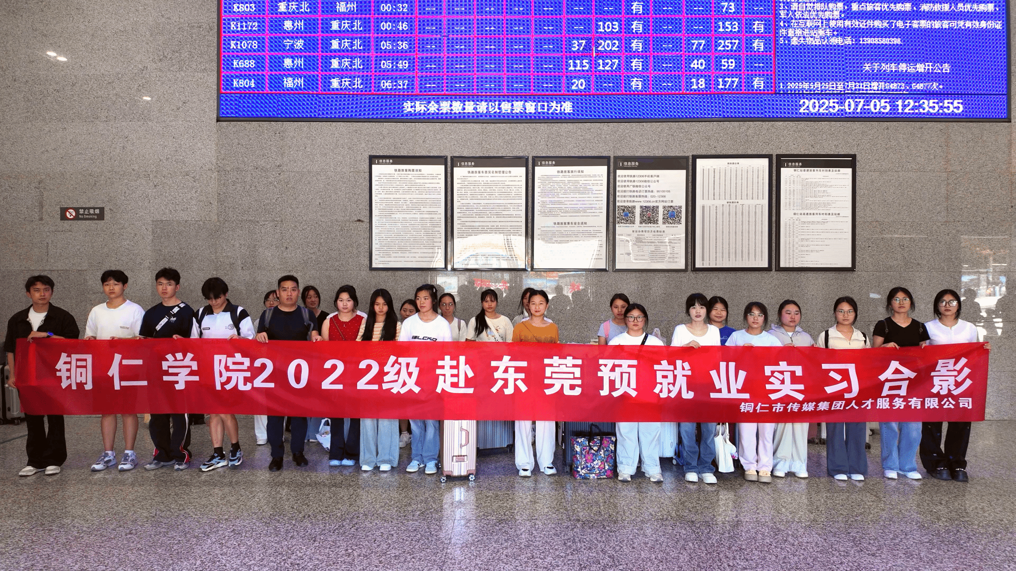 为深化产教融合、提升学生实践能力、促进高质量就业,近年来,beat365积极响应国家“稳就业、促就业”政策号召,将实习实训作为提升学生就业竞争力的关键抓手。7月6日,学校依托铜仁市传媒集团提供的实践平台,组织学前教育、小学教育、汉语言文学3个专业共74名学生赴广东省开展预就业实习,为学生搭建从“校园”到“职场”的过渡桥梁。学校与铜仁市传媒集团相关人员共同为学生送行,全程护航实习启程。