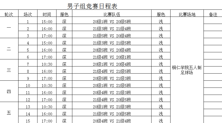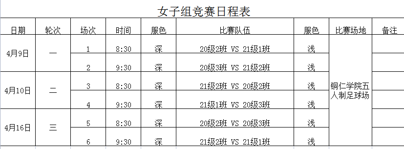 赛程表