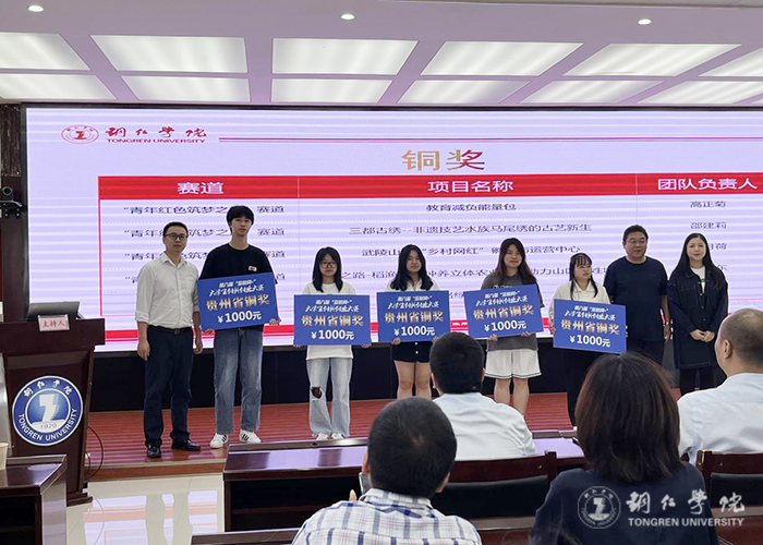 启动仪式上,中国银行铜仁分行对参会师生开展了金融知识宣讲;教务处对第九届“互联网+”大学生创新创业大赛简介及校赛规则进行说明并邀请了上届省赛获奖团队给现场师生演示了获奖项目;对2022年“互联网+”省赛获奖项目进行了颁奖。