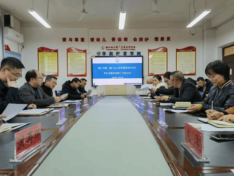 为进一步深化校际合作,优化专业联合培养机制,11月27日下午,教务处处长孙向阳一行8人前往铜仁幼儿师范高等专科学校,就联合培养专业的人才培养情况开展交流调研,铜仁幼儿师范高等专科学校副校长杨会新陪同调研。学校发展规划处、教育学院、艺术学院、马克思主义学院、大健康学院相关领导及工作人员,及铜仁幼儿师范高等专科学校联合办学教育教学部、联办专业负责人参加座谈。