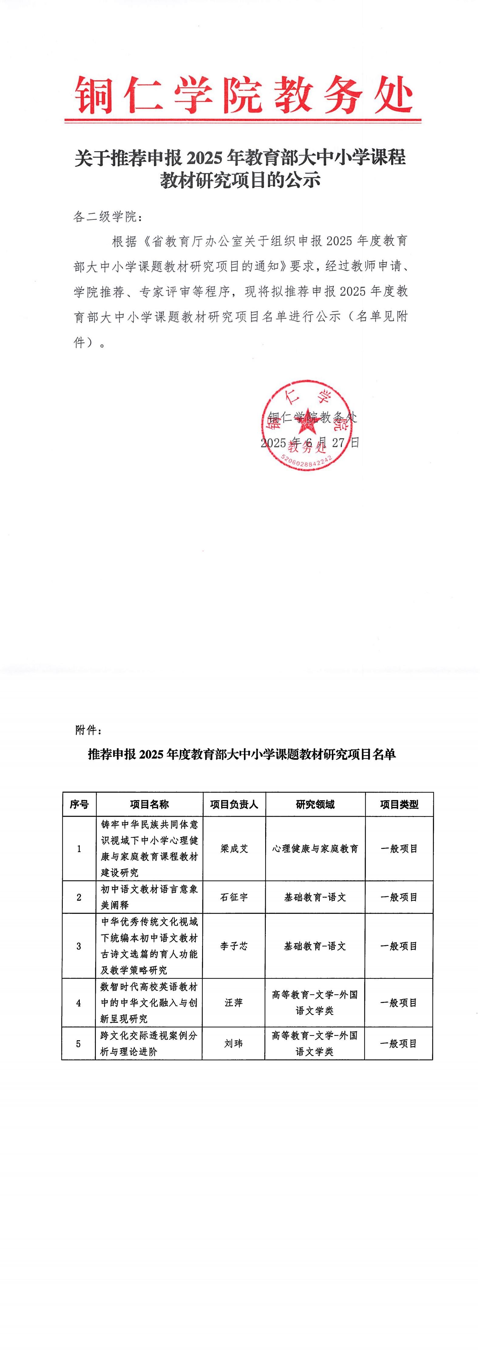 关于推荐申报2025年教育部大中小学课程教材研究项目的公示