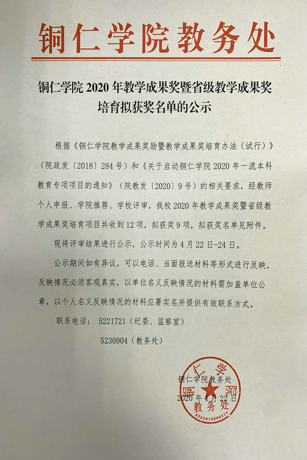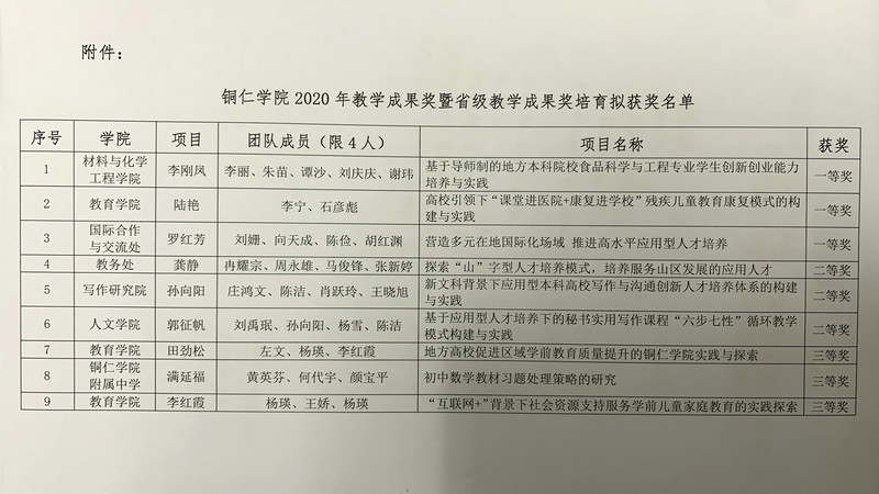 beat365英国官方网站2020年教学成果奖暨省级教学成果奖培育拟获奖名单的公示