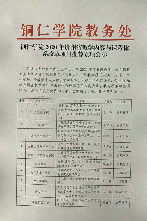 beat365英国官方网站2020年贵州省教学内容与课程体系改革项目推荐立项公示