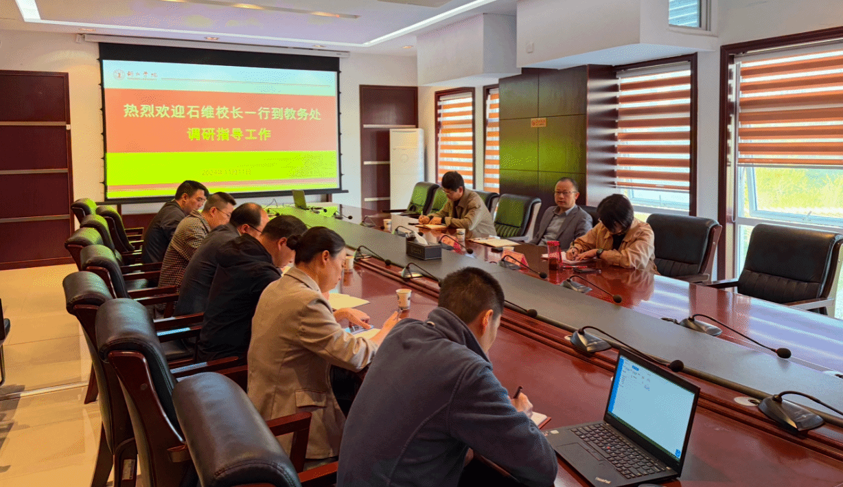 11月11日下午,校长石维率副校长龚静、党政办副主任李博一行亲临教务处进行深入调研并指导工作。教务处班子成员、所有科室负责人参加会议。