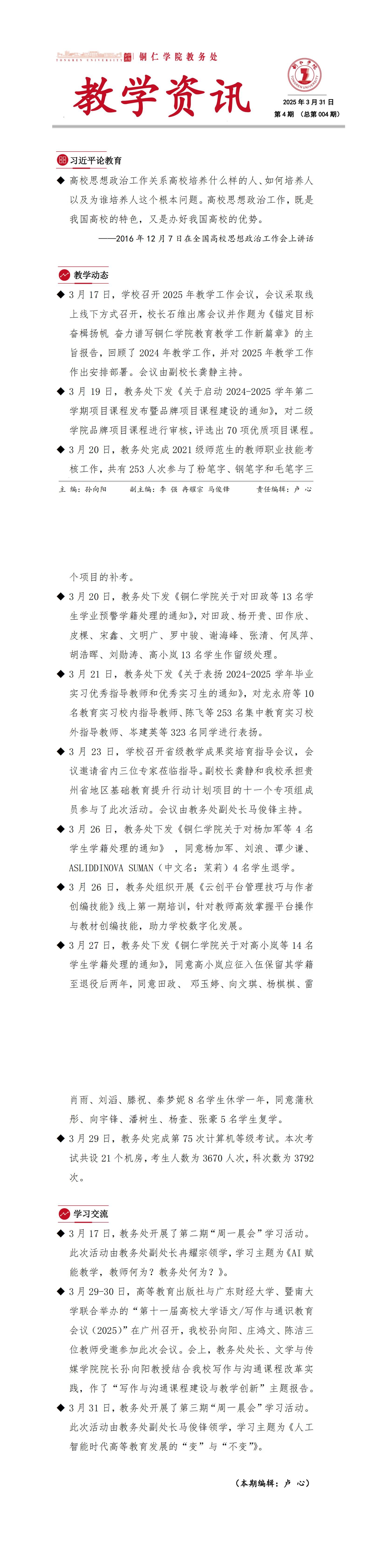 2025年第四期教学资讯