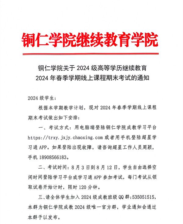 beat365英国官方网站关于2024级高等学历继续教育2024年春季学期线上课程期末考试的通知