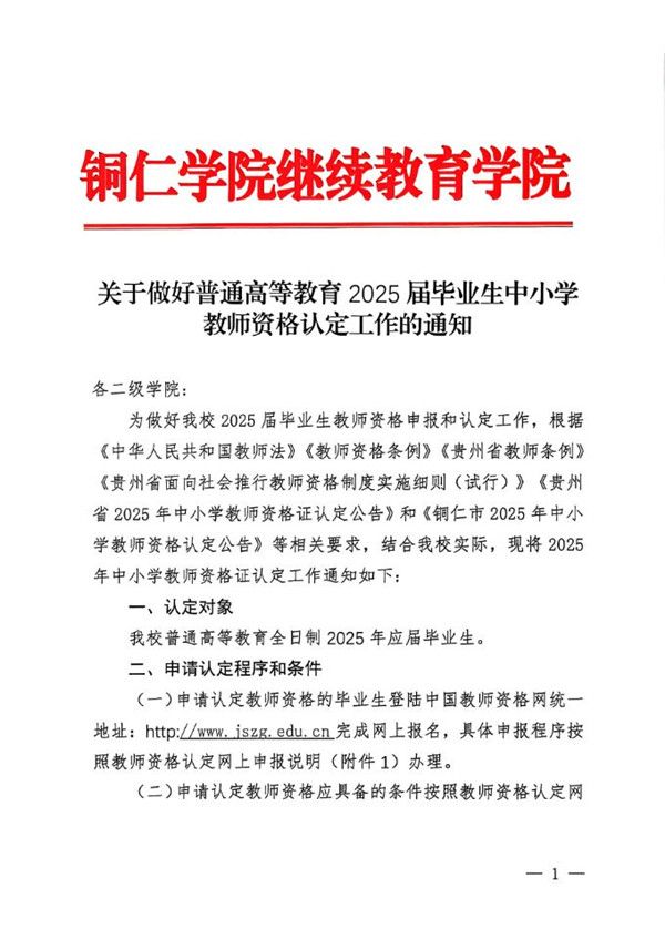 关于做好普通高等教育2025届毕业生中小学教师资格认定工作的通知
