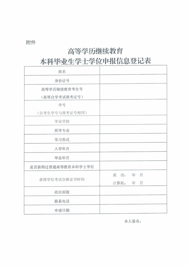 附件:高等学历继续教育本科毕业生学士学位申报信息登记表.doc