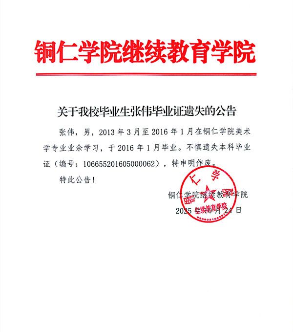 关于beat365毕业生张伟毕业证遗失的公告