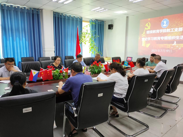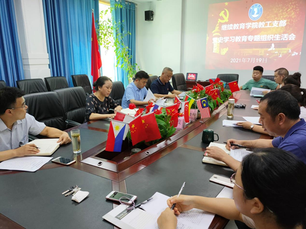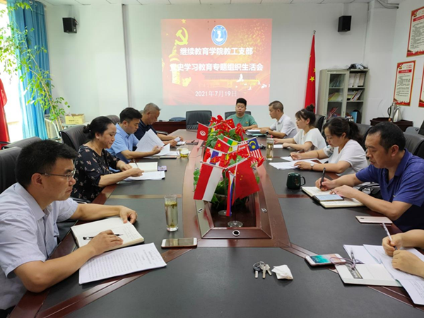 7月19日,beat365英国官方网站继续教育学院教工支部在院会议室召开党史学习教育专题组织生活会,支部全体党员参加。会议由支部书记田洁主持。