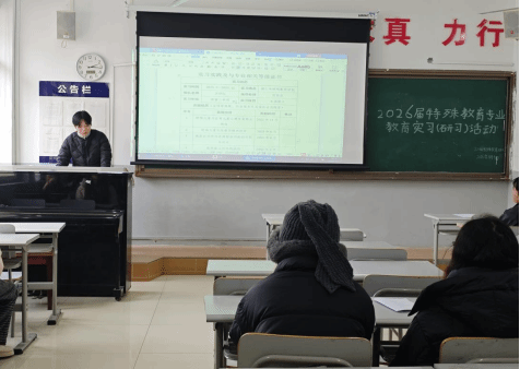 首先,刘方林老师立足学生成长与发展,着重强调了特殊教育实习工作的重要意义。他指出,实习是理论知识转化为教学实践的关键桥梁,不仅是提升专业技能的重要途径,更是锤炼责任担当的宝贵契机。同时,刘方林老师强调,同学们要秉持严谨务实的作风复盘实习点滴,并着重提醒同学们加快毕业论文的完善进度,确保各项任务有序推进。随后,宋健老师与黄守盼老师聚焦实习材料规范,针对实习手册与成长手册的完善工作进行细致指导。两位老师结合特殊教育专业实习的特点,从手册填写的规范性、内容记录的真实性、成长反思的深刻性等方面提出具体要求,强调手册不仅是实习过程的客观记录,更是同学们梳理实践经验、提升专业认知的重要载体,鼓励大家认真查漏补缺,高质量完成材料整理工作。