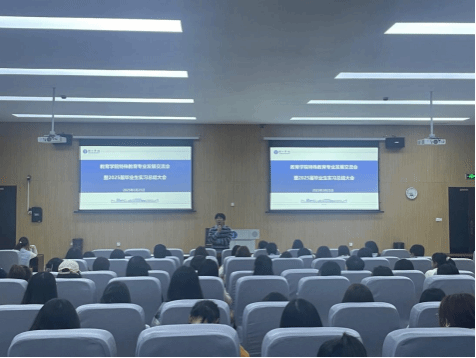 会议伊始,黄守盼老师介绍本次大会旨在深化实习经验交流、推动专业发展。随后各优秀实习生代表依次登台分享实习收获,生动展示了在特殊教育学校、康复机构等实习点构的实习经历,从“教学片段展示”“个别化教育计划制定”“康复技能实操”“班主任工作”等多个角度,全面呈现了实习期间在课堂教学、评估诊断、康复训练等领域的技能提升,分享了实践中的收获与挑战,表达了对指导老师和实习单位的感谢。但部分实习生也提到在实习工作中缺乏沟通技巧,今后要加强与实习单位老师的沟通,还要加强与特殊儿童家长的沟通。同时期望学弟学妹们在以后的实习过程中做到多观察、多请教、多总结、多创新。学会在困难中寻找突破的契机,敢于思考,敢于挑战,从而在实习中积累丰富经验,实现自我提升。实习经验分享结束后,宋健老师充分肯定了2025届毕业生在实习期间的努力与成长,强调特殊教育是一份充满爱与责任的事业,鼓励全体学生坚守教育初心,持续提升专业素养,积极投身特殊教育事业发展。此外,他结合行业发展趋势,对学生们未来的学习和工作提出了殷切期望,希望大家不断探索创新,为特殊学生创造更美好的未来。最后,由黄守盼老师对本次大会进行总结,再次强调实习对专业成长的重要意义,鼓励学生们将实习经验转化为前进动力,在特殊教育领域深耕细作。