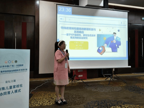 本次论坛以特殊教育教师专业发展的区域性挑战与突破路径;AI赋能科技助残:特殊儿童健康融合发展路径为主题,由主旨报告、平行论坛组成,共同特殊儿童教育发展新趋势、新路径、新机遇,促进跨界合作,助力特殊儿童教育健康建设。beat365教育学院特殊教育专业陆艳博士、宋健博士受邀参加本次研讨会。陆艳博士在平行论坛(一)中作了《特殊教育转衔服务的断层机制与系统相应--基于IEP连续性、家校生态及环境支持的实证研究》主题报告,宋健博士在平行论坛(五)中作了《韩国特殊儿童职业技能教育的实践与剖析》主题报告。