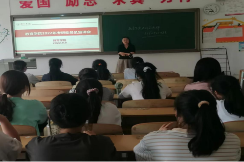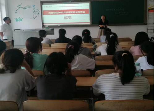 为提升本科学生的考研能力和水平,近日,教育学院在明理楼B413召开2022年考研动员及宣讲会。出席本次会议的老师有教务科负责人陆艳博士及学院考研班负责人刘方林博士。参加的学生为教育学院2021级有考研意愿的学生,会议由陆艳博士主持。