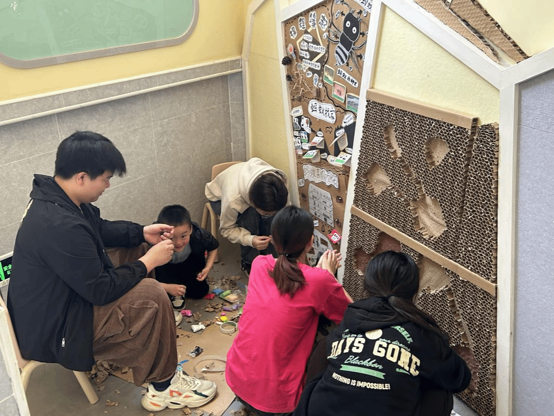 教学活动结束后,2021级、2022级学生在任课教师及幼儿园管理者的带领下,参与了幼儿园各年级组的环境创设工作,助力幼儿园各班级及公共区域的环境改造,为幼儿打造了符合身心发展需求、充满生活趣味的学习生活环境。